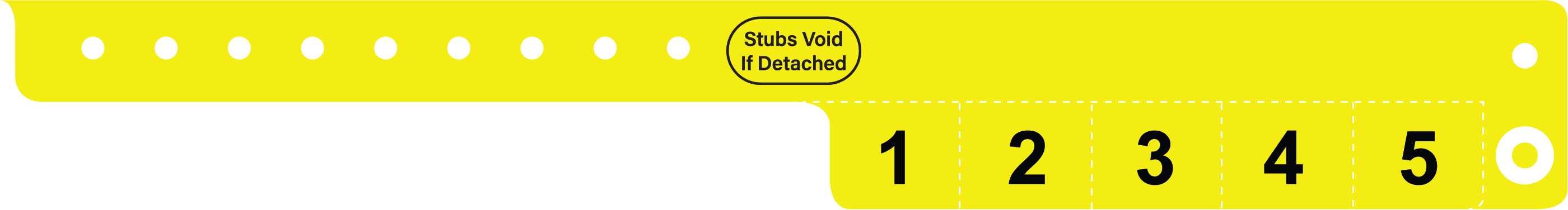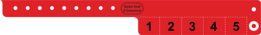 Multi tab wristbands often called cash tags are a durable vinyl wristband which have multiple pull off tabs generally for redemption use. Each tab is removed as required from the wristband and presented to redeem drinks, meals, rides, etc. These wristbands are essentially a way for customers to repay you, helping to safeguard your receipts and plan your event.