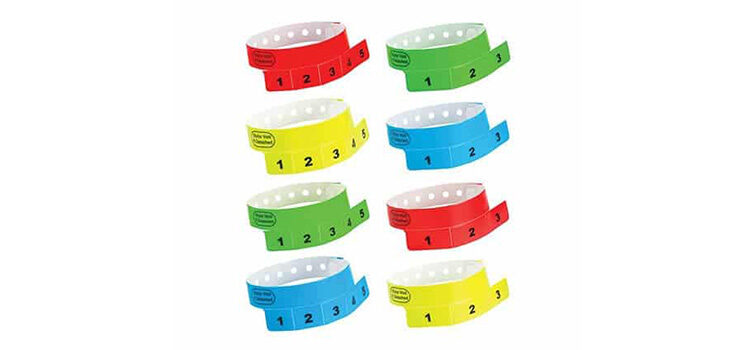 Custom imprinted or numbered, multi tab wristbands can be a simple way not only to ensure patrons get what they pay for, it helps eliminate abuse of your system.